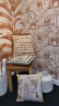 El rombe és un motiu que es repeteix en les noves col·leccions per aquest 2018, a continuació veiem el model en una combinació de colors beix i blau, jugant amb el tema dels contrastos i desgastats per arribar a aquest efecte tridimensional. El resultat és espectacular, a més el paper és d’alt gramatge d’una qualitat excel·lent, el mateix que dir que el paper que presentem al seu costat, les fulles de plàtans verds, que són tendència del moment, paper que estarà disponible en diverses tonalitats .