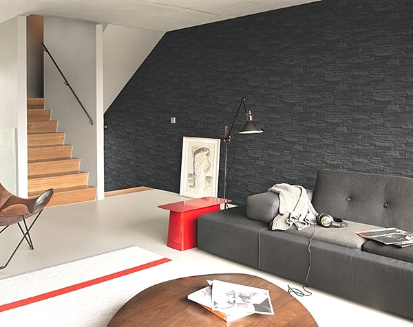 Avui dia la decoració de parets amb paper pintat ha avançat tant que les imitacions de fusta, pedra, maons, formigó, suro fan que es confongui amb la realitat, New Walls es tracta d’una nova colecció on hi trobem els dissenys comentats, a continuació veiem els interiors empaperats amb aquestes textures i materials, el bany decorat amb paper de pedra queda espectacular, la imitació dels llistons de fusta desgastada aconsegueix l’estil vintage que tan está de moda, el paper de paret de pedra fosca aconsegueix l’elegancia que ens faltava en aquesta sala d’estar.